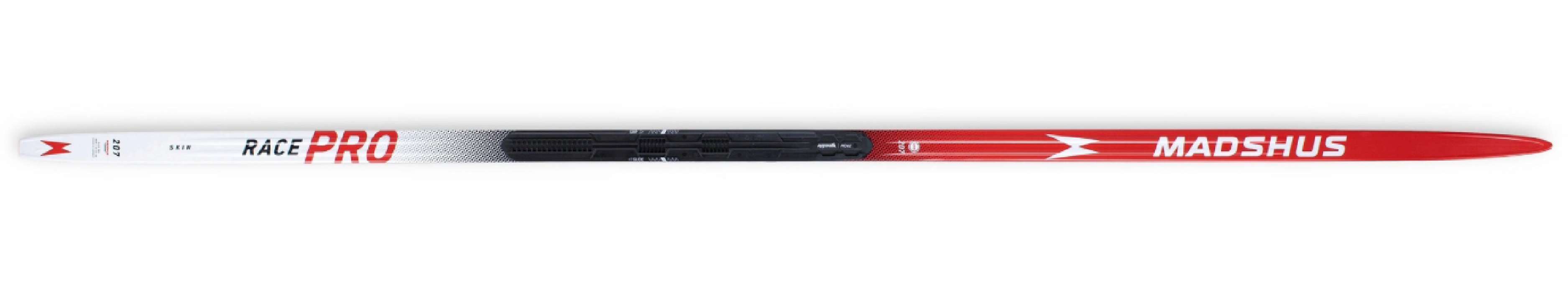 The Race Pro Skin is the perfect combination of grip and glide for technically proficient skiers looking for a racing skin ski. This is a race-class ski featuring a shorter skin than touring and training models. The Madshus Integrated skin is made from 100% mohair, and coupled with a livelier camber, the Race Pro Skin provides better glide and rewards skiers who can deliver an active kick.